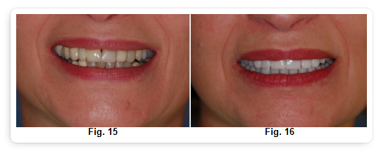 La Fig.15 muestra cómo quedaban frecuentemente las reposiciones protéticas realizadas hace muchos años. Hoy en día, por suerte las técnicas se han perfeccionando. Fig. 16